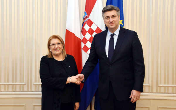 Premijer Plenković primio je posjet predsjednice Malte Marie–Louise Coleiro Preca, koja boravi u službenom posjetu Hrvatskoj