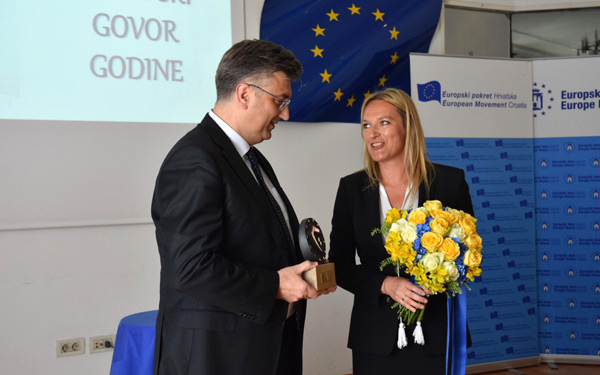 U Europskom domu u Zagrebu predsjedniku Vlade Andreju Plenkoviću svečano je dodijeljena Nagrada za europski govor godine