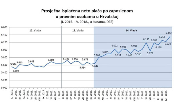 Podaci Državnog zavoda za statistiku pokazuju da je od listopada 2016. do danas prosječna plaća porasla za 710 kuna