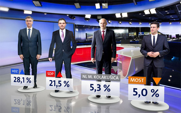 U listopadu 2019. potpora vladajućem HDZ-u iznosi 28,1% (u rujnu 27,1%), dok je SDP drugi s podrškom od 21,5% (u rujnu 20,3%), a slijede NL Mislav Kolakušić sa 5,3%, MOST sa 5%, Živi zid sa 4,9%, Bandić Milan 365 sa 3,6% te ostale stranke, a neodlučnih birača je 7,1%.