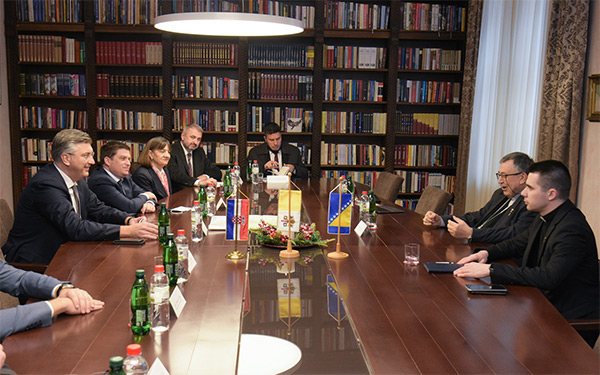 Predsjednik Vlade Andrej Plenković, koji boravi u službenom posjetu BiH, nakon razgovora s predsjedateljem Vijeća ministara Zoranom Tegeltijom sastao se s čelnicima dva doma parlamenta te zemlje, od kojih su neki ujedno i lideri vladajućih političkih stranaka u toj zemlji. Među njima su Dragan Čović, lider HDZ BiH i Bakir Izetbegović, predsjednik Stranke demokratske akcije (SDA).