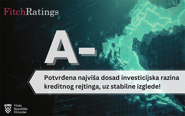 Jedna od vodećih svjetskih agencija za dodjelu kreditnog rejtinga, Fitch, potvrdila je u svojem najnovijem izvješćukreditni rejting Hrvatske A-, uz stabilne izglede