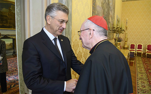 Predsjednik Vlade Andrej Plenković doputovao je u dvodnevni službeni posjet Svetoj Stolici, koji je započeo sastankom s državnim tajnikom Svete Stolice, kardinalom Pietrom Parolinom