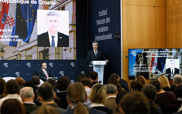 Predsjednik Vlade Andrej Plenković održao je predavanje na Francuskom institutu za međunarodne odnose pod naslovom "Europa na raskrižju: utvrđivanje suvereniteta u svijetu koji se mijenja"
