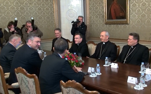 Predsjednik Vlade Plenković primio je predsjednika Hrvatske biskupske konferencije mons. Želimira Puljića, zagrebačkog nadbiskupa kardinala Josipa Bozanića i članove Stalnog vijeća HBK-a