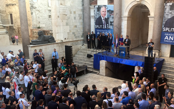 Na izbornom skupu na splitskom Peristilu predsjednik HDZ-a Plenković istaknuo je da će izbor Andre Krstulovića Opare za gradonačelnika Splita i Blaženka Bobana za splitsko-dalmatinskog župana 21. svibnja biti prekretnica za HDZ