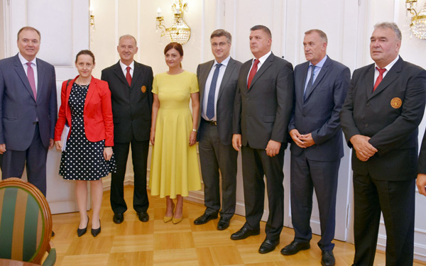 Premijer Plenković primio je izaslanstvo Viteškog alkarskog društva Sinj na čelu s njegovim predsjednikom Stipom Jukićem i sinjsku gradonačelnicu Kristinu Križanac