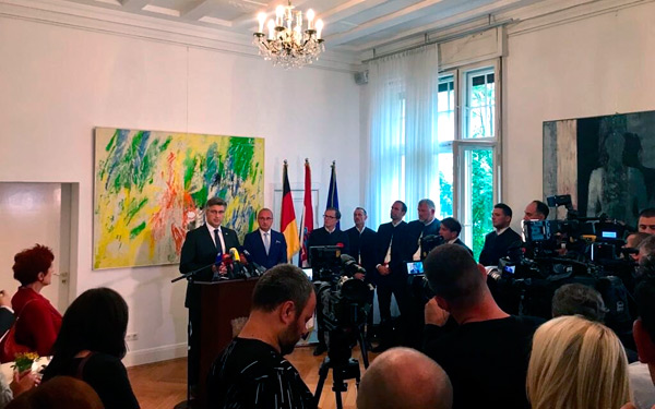 Predsjednik Vlade naglasio je da Hrvatska i Njemačka imaju savezničke odnose u okviru NATO-a te partnerske u okviru Europske unije, izrazivši želju da ovaj posjet ugradi nove kockice u bilateralne odnose dviju zemalja.