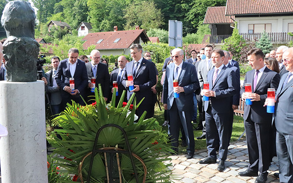 "Još jednom smo došli iskazati poštovanje prema dr. Franji Tuđmanu, prvom predsjedniku RH i utemeljitelju HDZ-a, političaru, povjesničaru i državniku koji je predvodio Hrvatsku na njenu putu u samostalnost i neovisnost", rekao je premijer Plenković nakon što je položio vijenac i zapalio svijeću u Velikom Trgovišću ispred Tuđmanove rodne kuće.