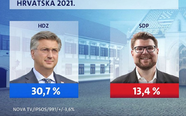 Podrška HDZ-u porasla na 30,7%, SDP na 13,4%