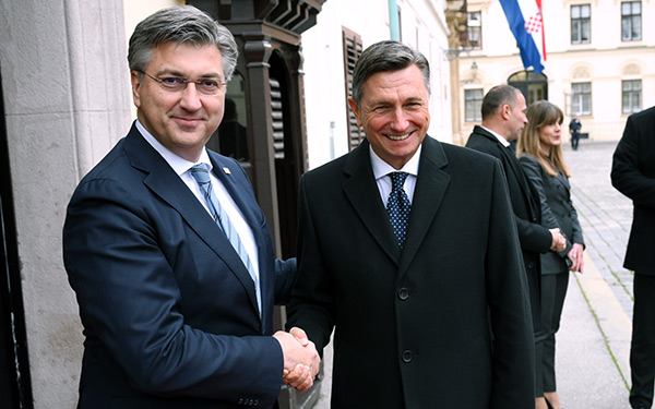 Predsjednik Vlade Andrej Plenković sastao se sa slovenskim predsjednikom Borutom Pahorom, koji je posljednji put posjetio Hrvatsku u tom svojstvu