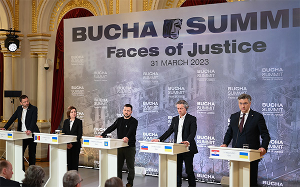 Povodom godišnjice oslobođenja ukrajinskog grada Buče premijer Andrej Plenković, moldovska predsjednica Sandu, slovački premijer Heger i slovenski premijer Golob sudjeluju u sastanku »Buča – odgovornost Rusije za zločine u Ukrajini«