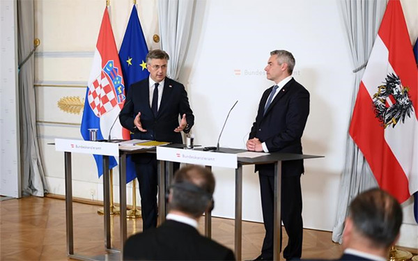 Austrijski kancelar Karl Nehammer naglasio je da je Hrvatska Austriji važan trgovinski partner te da se suradnja dviju zemalja bazira na međusobnom povjerenju.