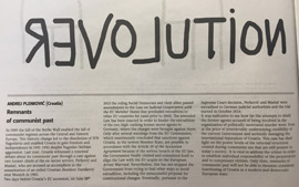 U osvrtu za rumunski tjednik Revista 22 zastupnik Plenković govori o obnovljenoj raspravi u Hrvatskoj o ostacima komunističke prošlosti nakon stjecanja samostalnosti i odvajanja od bivše SFRJ 1991.