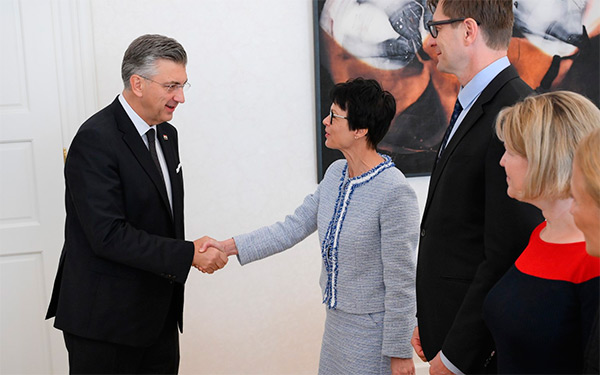 Predsjednik Vlade Andrej Plenković primio je povjerenicu Europske komisije za proširenje Martu Kos, koja boravi u posjetu Hrvatskoj