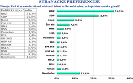 HDZ vodeća stranka, porasla potpora radu Vlade