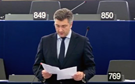 Tijekom plenarnog mini-zasjedanja Europskog parlamenta potpredsjednik Odbora za vanjske poslove Andrej Plenković održao je govor o proširenju Unije na države jugoistočne Europe