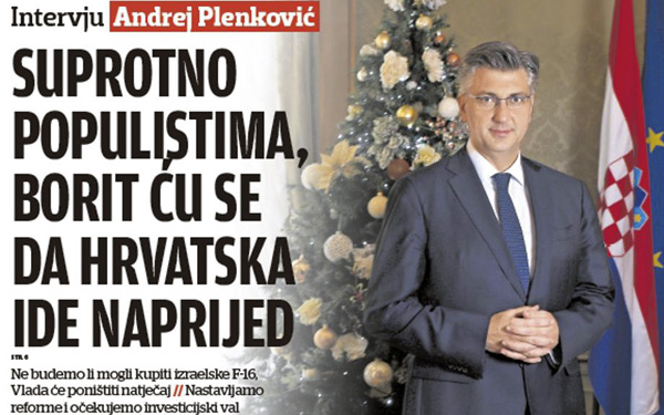 U velikom božićnom intervjuu za Jutarnji list premijer Plenković rezimirao je godinu na izmaku te najavio ključne gospodarske poteze Vlade u 2019, osvrnuvši se pritom na brodogradilišta, Rafineriju Sisak i LNG na Krku, kao i na stanje u HDZ-u