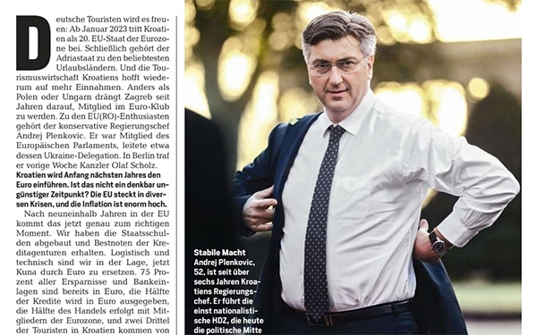 Premijer Plenkovć dao je intervju za njemački tjednik »Focus« o ulasku u eurozonu, zapadnom Balkanu i energetskim izazovima