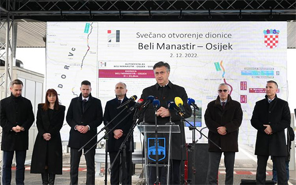 Na svečanom otvorenju dionice autoceste A5 Beli Manastir–Osijek premijer Andrej Plenković naglasio je da su ravnomjeran regionalni razvoj Hrvatske, prometna povezanost i gradnja infrastrukture strateški prioriteti Vlade