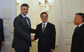 Predsjednik Vlade Andrej Plenković primio je posjet predsjednika Vrhovnog narodnog suda Narodne Republike Kine Qiang Zhoua