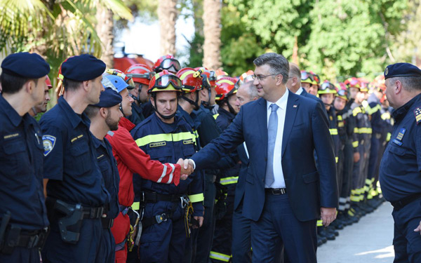 U pratnji ministra obrane Damira Krstičevića i ministra unutarnjih poslova Davora Božinovića premijer Plenković posjetio je Centar za koordinaciju, vođenje i gašenje požara na priobalju u Divuljama