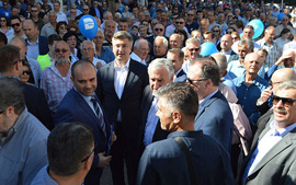 Na prepunom središnjem gradskom trgu u Metkoviću Andrej Plenković izrazio je uvjerenje u izborni uspjeh HDZ-ova kandidata za gradonačelnika Dalibora Milana i HDZ-a u Dubrovačko-neretvanskoj županiji