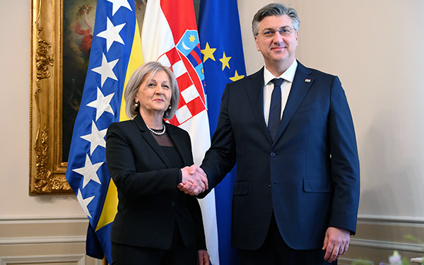 Predsjednik Vlade Andrej Plenković sastao se s predsjedateljicom Predsjedništva Bosne i Hercegovine Željkom Cvijanović, koja boravi u službenom posjetu Hrvatskoj