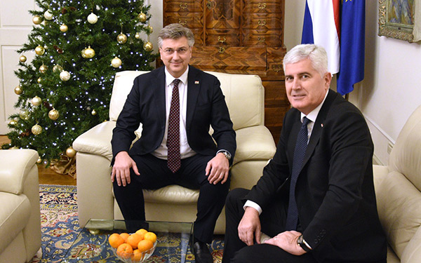 Predsjednik Vlade Andrej Plenković sastao se s predsjednikom Hrvatskog narodnog sabora BiH i HDZ-a BiH dr. Draganom Čovićem, s kojim je razgovarao o procesima koji slijede nakon potvrde novog Vijeća ministara BiH