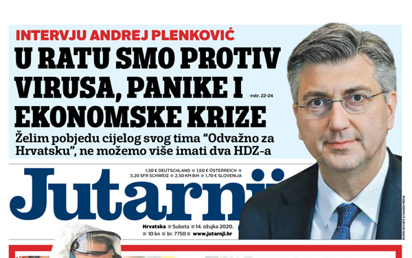 U intervjuu za Jutarnji list predsjednik Vlade i HDZ-a Andrej Plenković govori o suzbijanju pandemije koronavirusa, migacijskoj krizi i potpori timu Odvažno za Hrvatsku na stranačkim izborima