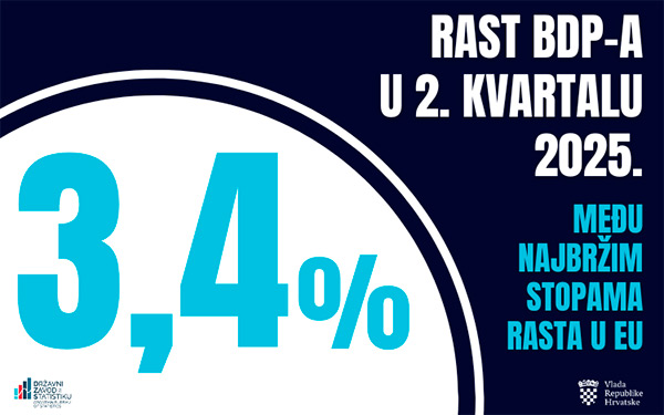 Državni zavod za statistiku objavio je prvu procjenu prema kojoj je bruto domaći proizvod u drugom tromjesečju realno porastao za 3,4% u odnosu na isto lanjsko razdoblje