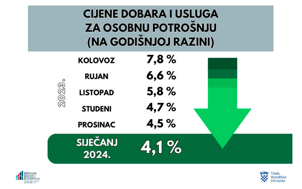Predsjednik Vlade Andrej Plenković izjavio je da podaci Državnog zavoda za statistiku pokazuju da se u siječnju ove godine nastavlja trend smanjenja inflacije i naglasio da Vlada štiti standard građana