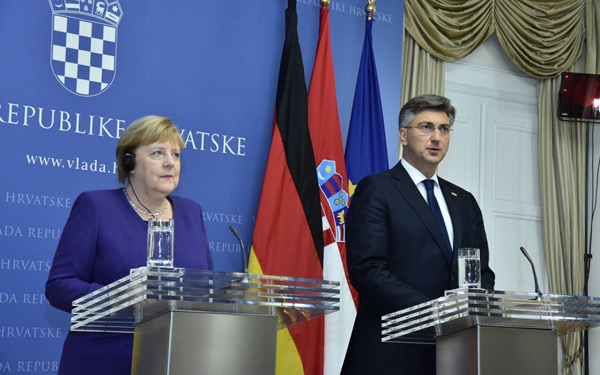 Predsjednik Vlade Andrej Plenković primio je njemačku kancelarku Angelu Merkel, s kojom je razgovarao o prioritetima hrvatskog predsjedanja Vijećem EU-a, ambicijama Hrvatske za ulazak u Schengen i europodručje te o proširenju Unije