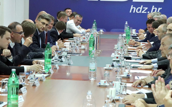 Nakon zajedničke sjednice Predsjedništva i Nacionalnog vijeća HDZ-a premijer Andrej Plenković dao je izjavu za brojne okupljene novinare