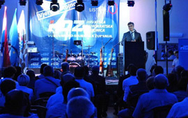 U prepunoj vinkovačkoj dvorani »Barun Trenk« predsjednik HDZ-a Plenković sudjelovao je na izbornom skupu HDZ-a Vukovarsko-srijemske županije uoči drugog kruga lokalnih izbora