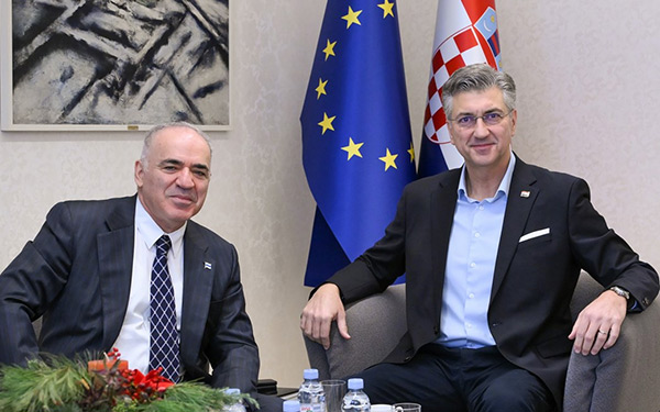 Predsjednik Vlade Andrej Plenković primio je Garija Kasparova, šahovskog velemajstora i prijatelja Hrvatske, kojem je zahvalio na popularizaciji šaha i promociji naše zemlje kao šahovske destinacije