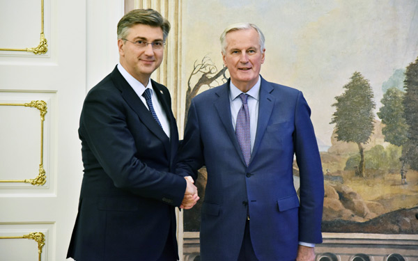 Predsjednik Vlade Andrej Plenković primio je glavnog pregovarača Europske unije za Brexit Michela Barniera