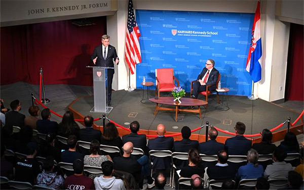 Premijer Andrej Plenković posjetio je Harvardsko sveučilište, gdje je održao predavanje i sudjelovao razgovoru s profesorom Grzegorzom Ekiertom, direktorom Centra za Europske studije