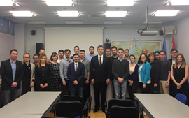 Na poziv Hrvatskog društva za Ujedinjene narode potpredsjednik Odbora za vanjske poslove EP-a Andrej Plenković održao je raspravu s polaznicima UN akademije o uzajamnim odnosima suradnje Ujedinjenih naroda i Europske unije