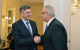 Premijer Andrej Plenković sastao se u Banskim dvorima s povjerenikom Europske komisije za međunarodnu suradnju i razvoj Nevenom Mimicom