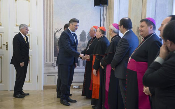 Premijer Plenković primio je predsjednika Hrvatske biskupske konferencije mons. Želimira Puljića, predsjednika Komisije za odnose s državom i člana Stalnog vijeća HBK-a mons. Dražena Kutlešu i generalnog tajnika HBK-a vlč. Krunoslava Novaka