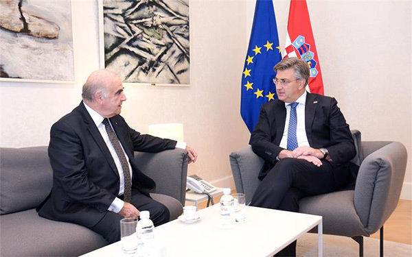 Predsjednik Vlade Andrej Plenković i predsjednik Međunarodnog rezidualnog mehanizma za kaznene sudove Carmel Agius razgovarali su o radu Mehanizma i njegovim budućim aktivnostima