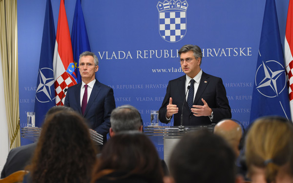 Predsjednik Vlade Andrej Plenković sastao se danas u Banskim dvorima s glavnim tajnikom NATO-a Jensom Stoltenbergom