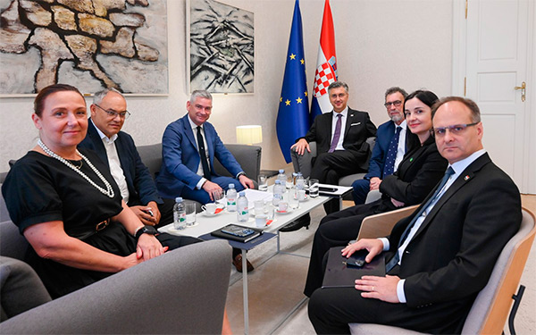 Predsjednik Vlade Andrej Plenković primio je u Banskim dvorima istarskog župana Borisa Miletića i gradonačelnika Buzeta Damira Kajina