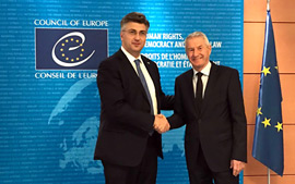 Tijekom posjeta Strasbourgu predsjednik Vlade Andrej Plenković sastao se s glavnim tajnikom Vijeća Europe Thorbjørnom Jaglandom